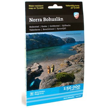 Den här kartan i skala 1:50.000 har ett utsnitt som i första hand är anpassat för dig som ska vistas på vattnet eller vid kusten. Den är självklart tryckt på det mycket vattentåliga syntetpappret Tyvek.