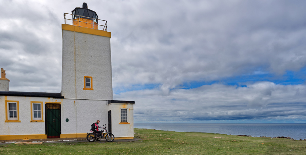 Ronas Hill – den höchsten „Berg“ Shetlands mit seinen 480 Metern – erklimmen wir nicht gänzlich mit unseren Motorrädern. Wir wollen die geschützten Brutvögel auf seinem runden Giebel nicht stören. Auf halber Höhe biegen wir deshalb rechts ab. Auf eine Schotterpiste, die uns in die Freuden des Offroad-Fahrens einführt.